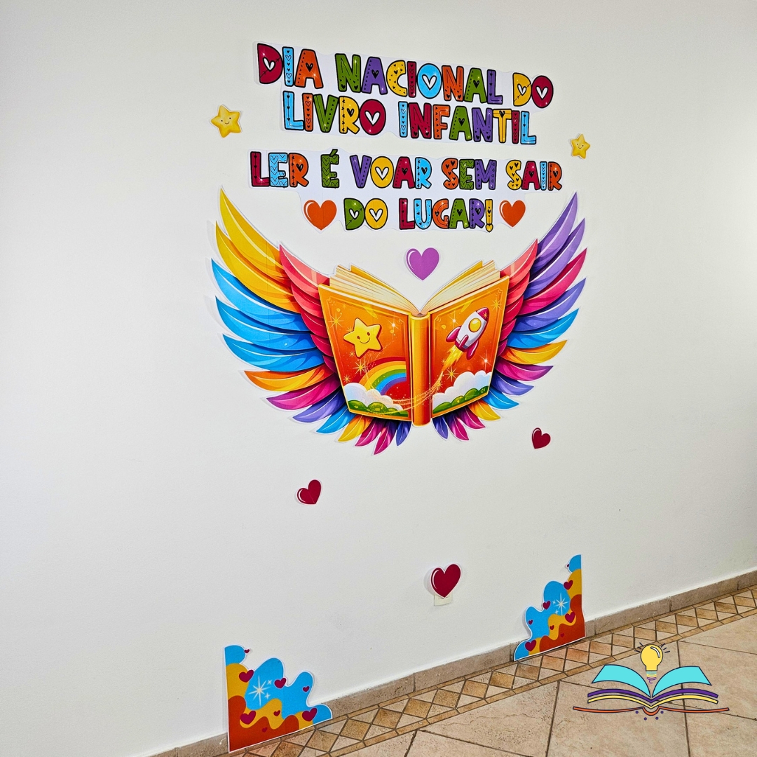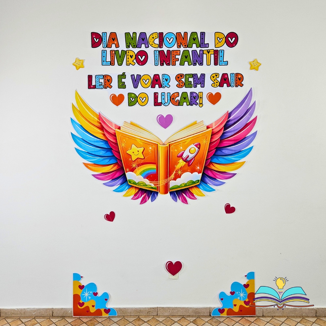🔸Painel Asas com o tema Dia Nacional do Livro Infantil, que é comemorado dia 18 de abril. Uma forma criativa de incentivar leitura, conhecimento e imaginação diariamente.