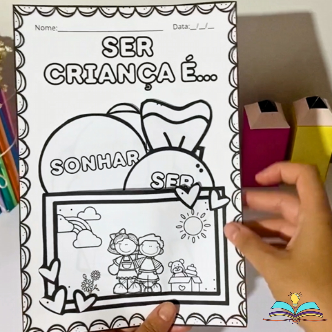 🔸Uma atividade lúdica e significativa para trabalhar com os alunos a importância de valorizar a infância. A criança poderá destacar palavras como brincar, sonhar, aprender, sorrir e amar, refletindo de forma simples e divertida sobre o que é ser criança.