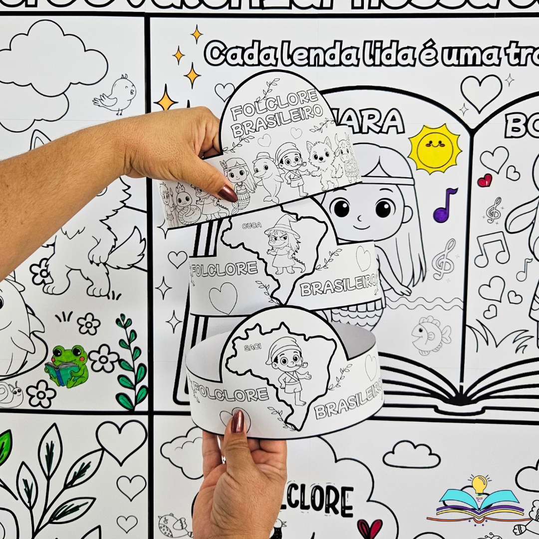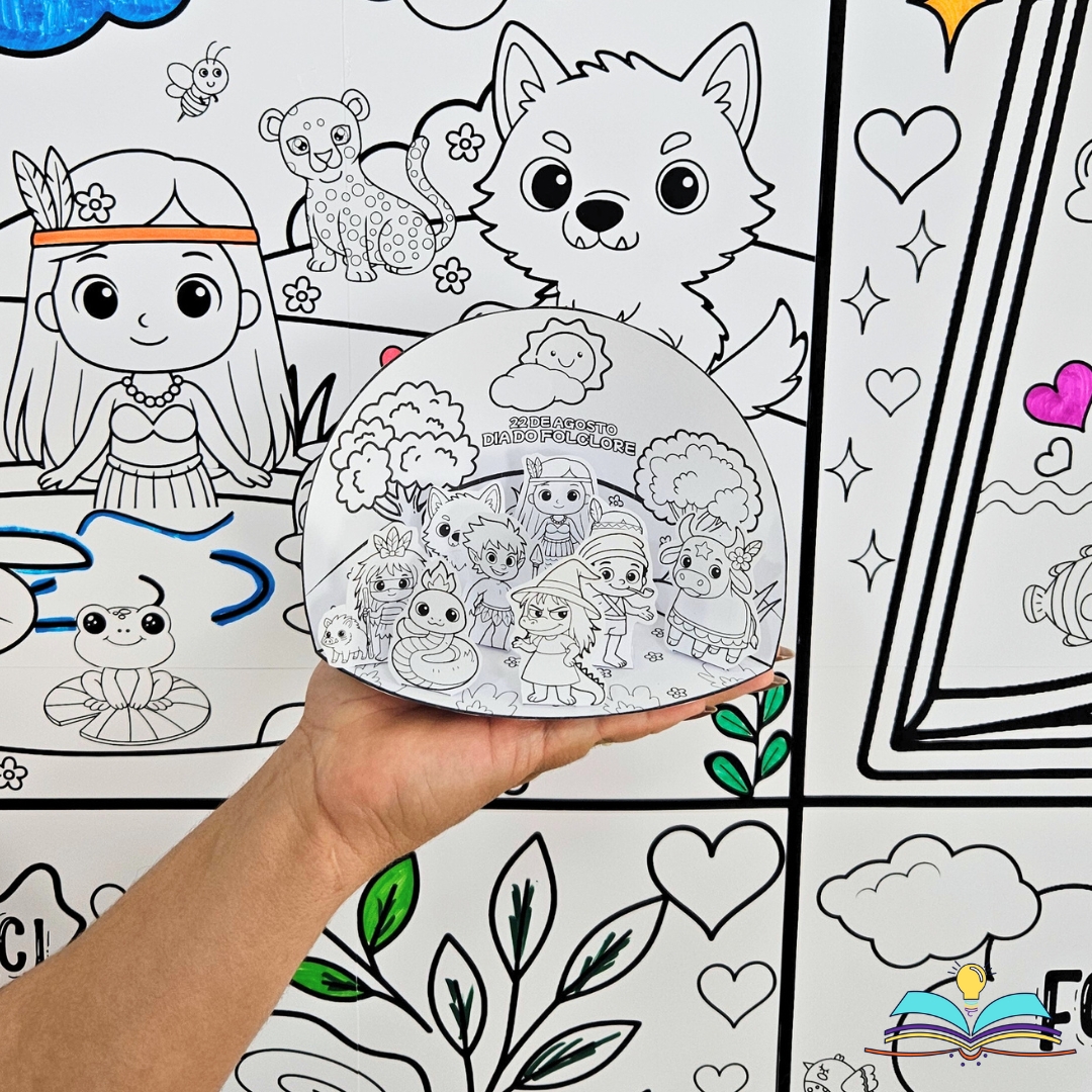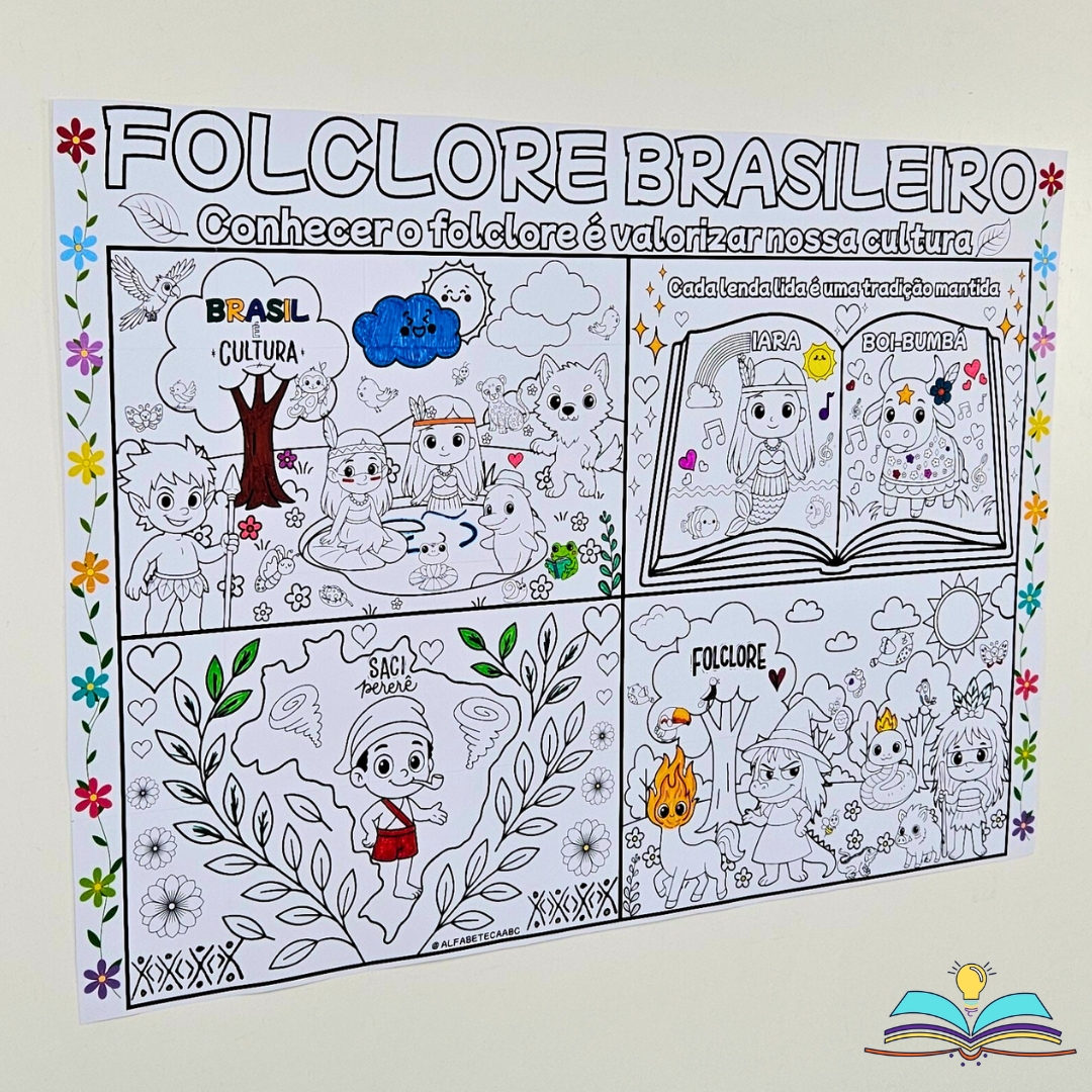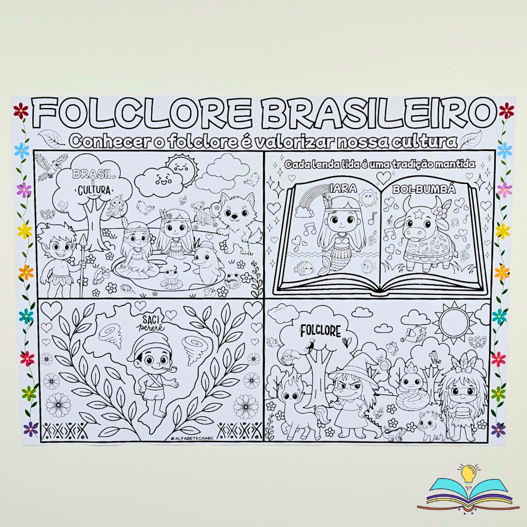 🔸Painel preto e branco para colorir do folclore brasileiro.