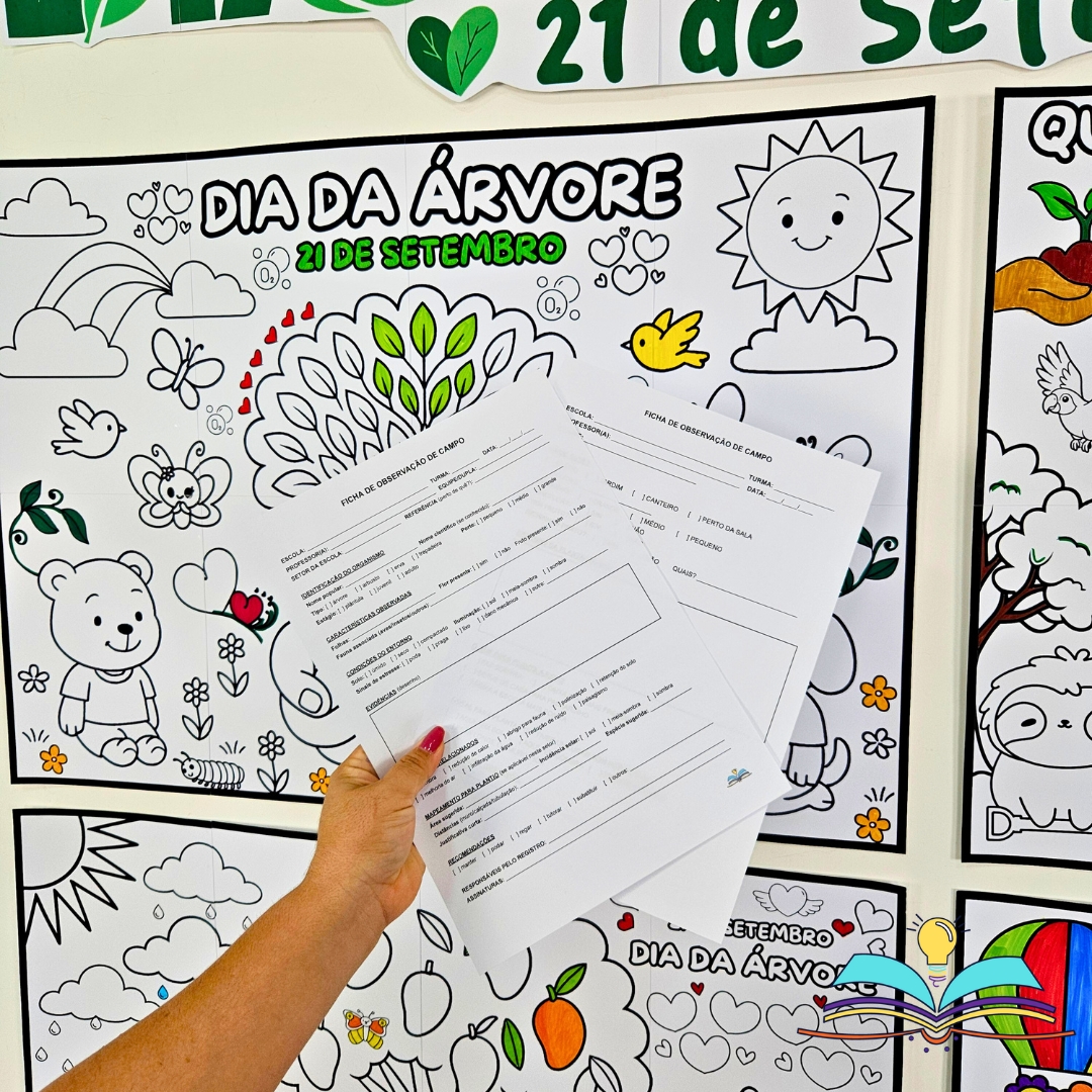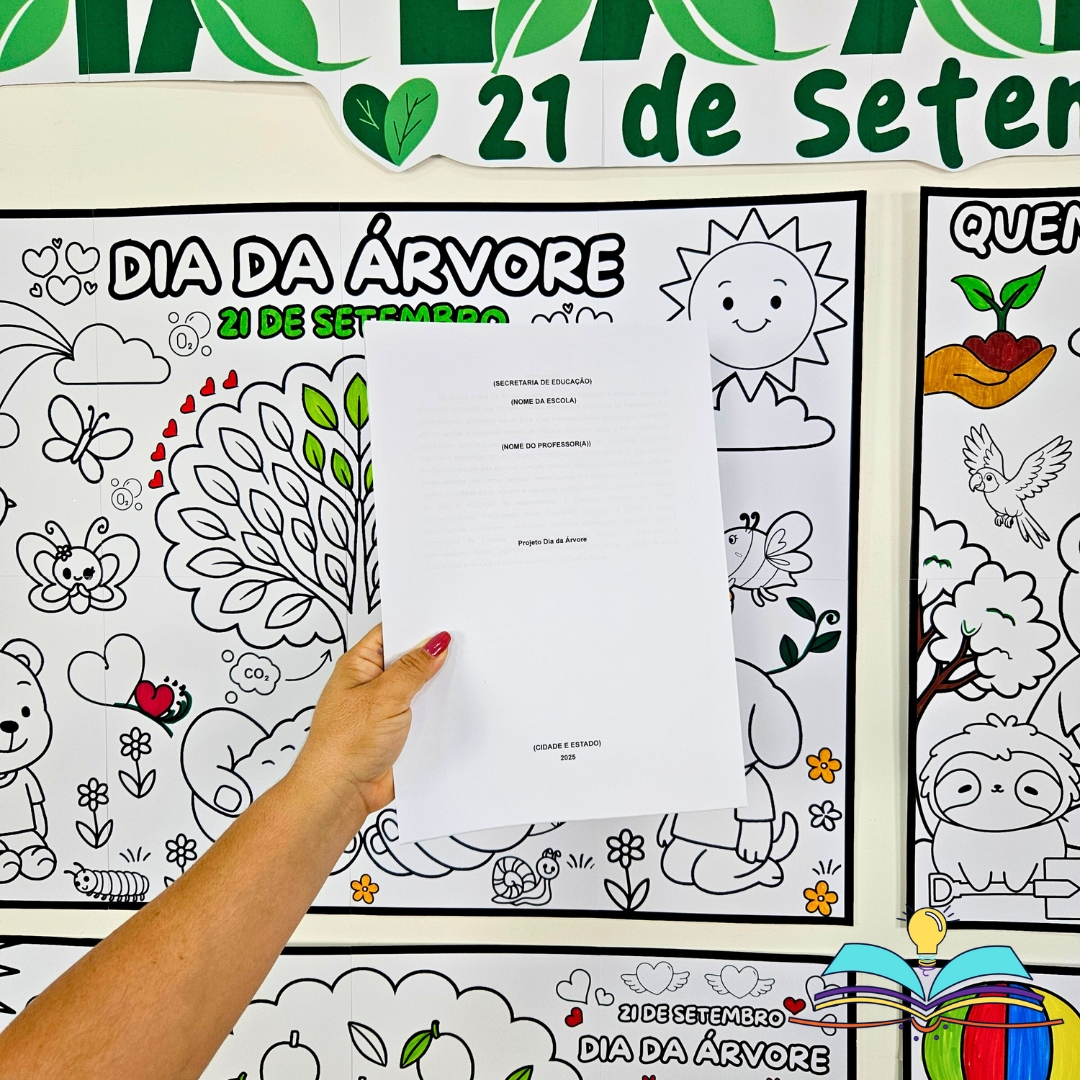 🔸Projeto pedagógico do Dia da Árvore para mapear a flora da escola, realizar plantio e socializar resultados com pintura coletiva do painel “Árvore” (acesso via drive para baixar).